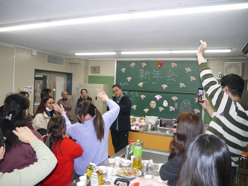继去年之后,今年再次举办了新年庆祝活动。我们玩了福娃来和卡鲁塔等日本新年游戏。大家还喝上了啤酒和甜汤,一起庆祝新年。在这一天的活动中,中国学生用韩语和日语演唱了日本歌曲,大家都玩得很开心。