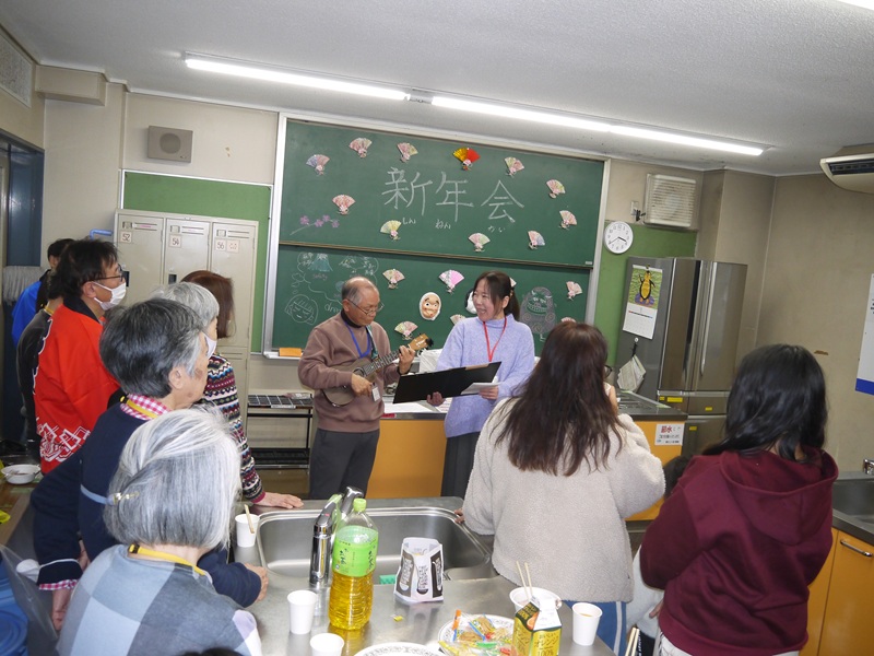 今年我们也办了新年派对!大家一起玩了日本传统的新年游戏,像是福笑和卡片游戏。还有橘子、零食和甜甜的红豆汤可以吃,超级开心。中间还有两个中国学生表演了唱歌,中文歌和日文歌都有,气氛特别棒。大家都过得很愉快!