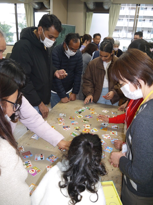 エドバタは、本年も新年祝賀会を行いました。福笑いとカルタで日本のお正月遊びをしました。ミカンやお菓子、甘いお汁粉などが振舞われ、皆で新年を祝いました。途中で中国人の生徒さん二人がそれぞれ中国の歌と日本の歌を歌うなど、皆で楽しいひと時を過ごしました。