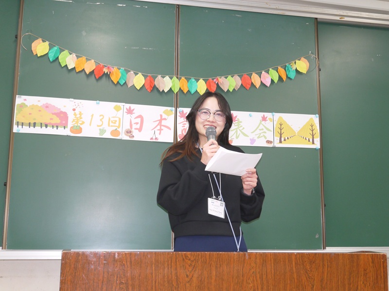 During the Japanese speech recital, 11 students delivered short speeches in Japanese. They spoke about various topics, such as their impressions of Japan and the Japanese people, how the Japanese language is interesting, and their study methods of Japanese.